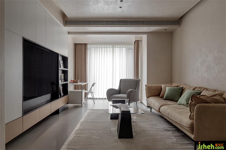 墻面用啞光色打底,在自然光的映襯下,增添了幾分舊時情懷。家裝設(shè)計窗簾、沙發(fā)、柜體的顏色源于自然,暖光咖色代表大地,間錯有致,呈現(xiàn)出一種井然有序的樸實氛圍。