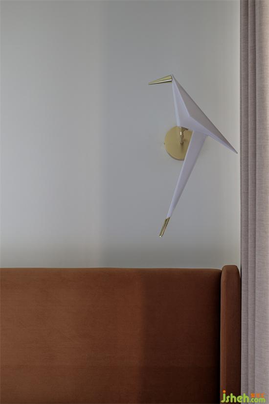 床頭燈的選擇別具匠心,線條一直一曲,顏色一黑一白,家裝設(shè)計造型一橫一豎,是對立與統(tǒng)一的生活哲學(xué)。