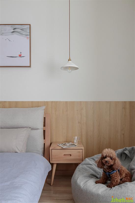 Bedroom tone and main tone consistent, wood color light color between the wrong use. The wood veneer of the cabinet body is used as the background color of the bedside background wall, which not only stretches the visual effect of the space, but also highlights the functionality of the bedroom, making it soft, warm and comfortable.