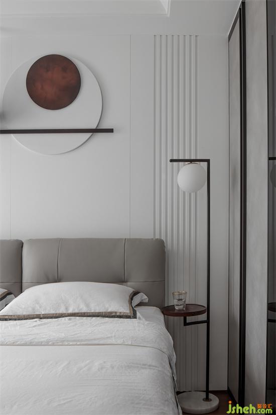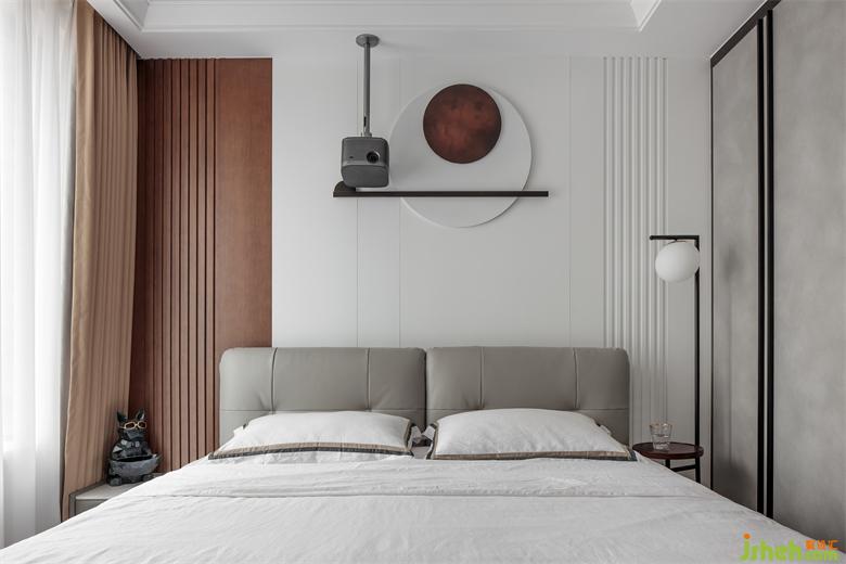 The design of the top projector meets the needs of the owners very well. The transparent glass wardrobe is full of personality, beautiful and atmospheric, and increases the transparency of the space. The circular floor lamp and wall decoration add softness to the space and enhance the warmth of the bedroom.