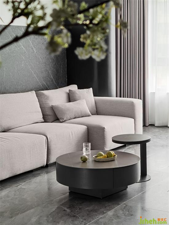 在客廳與陽臺間的分隔線則用曲線加以柔和,家裝設計營造出更為飽滿的輪廓。