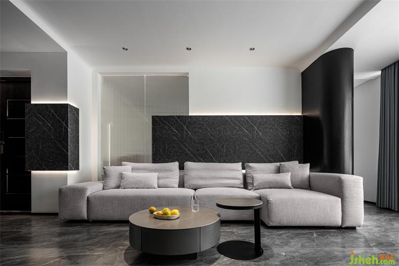The whole house adopts the design skills of straight-line bar design, body block interleaving, tone control, virtual and real combination, and creates a hard core black-and-white gray integrated home living space.