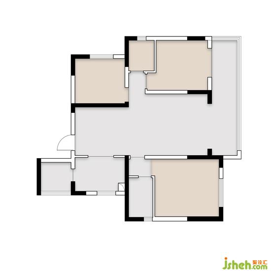 ②原有陽臺空間大,考慮到業(yè)主的生活習(xí)慣,將其一分為二,一部分依托于客廳,作為休閑的茶室,一部分用于擴充主臥的空間。
