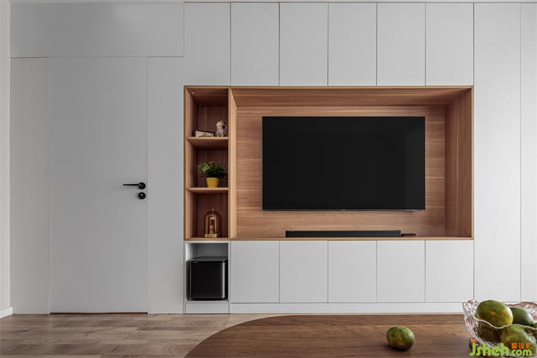 結(jié)合業(yè)主對音響、游戲的高品質(zhì)要求,電視柜的整體設(shè)計細(xì)致精確到了電源插座的位置,預(yù)留了后續(xù)各類家電的空間。主臥門也依托整體電視柜做了隱形效果。