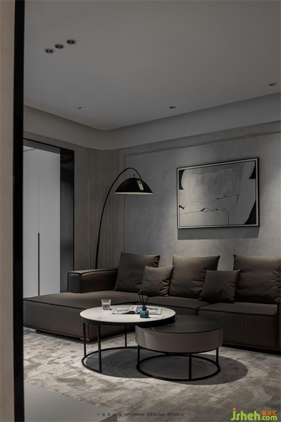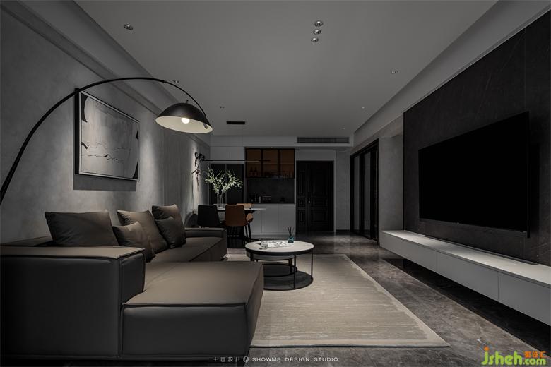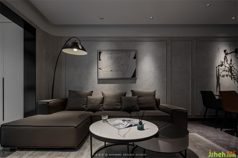 黑白灰搭配出來(lái)的效果從來(lái)都不會(huì)差。經(jīng)典的配色給客廳奠定了沉穩(wěn)大氣的旋律,地面用深色條紋亮面磚更是一種大膽的選擇。