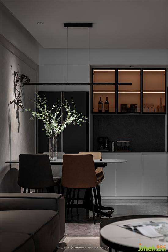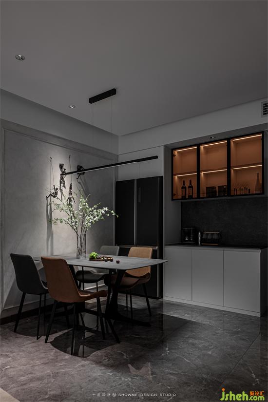 黑色亮面餐桌椅格調(diào)滿滿,內(nèi)江邦泰天著家裝設(shè)計(jì)搭配餐廳射燈的柔光,用餐空間的氛圍可以說拿捏得非常到位。
