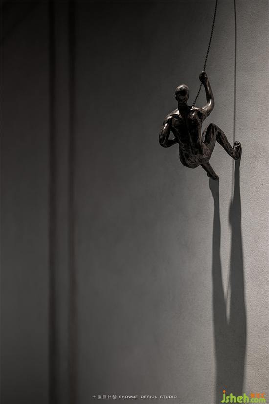 廊道區(qū)主色調(diào)是白色,與客餐廳區(qū)域形成鮮明的對(duì)比,寓意時(shí)空的變換交替,是從生活區(qū)到休息區(qū)的過渡,盡頭的掛畫與走廊呼應(yīng),營(yíng)造出一種意猶未盡之感。