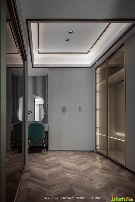 用吊滑門設計,既能保護隱私空間,又能作為衣帽間展示柜的柜門,是一門兩用的典范。
