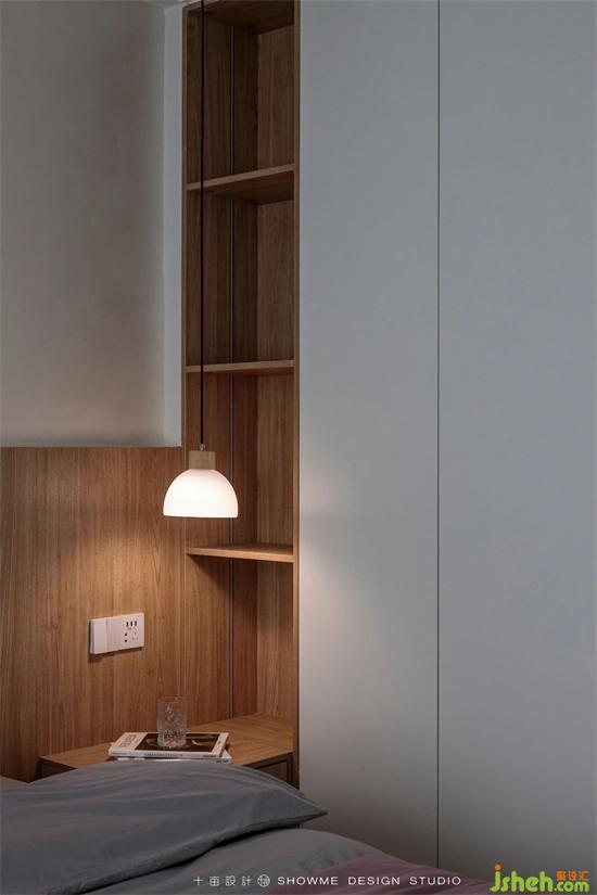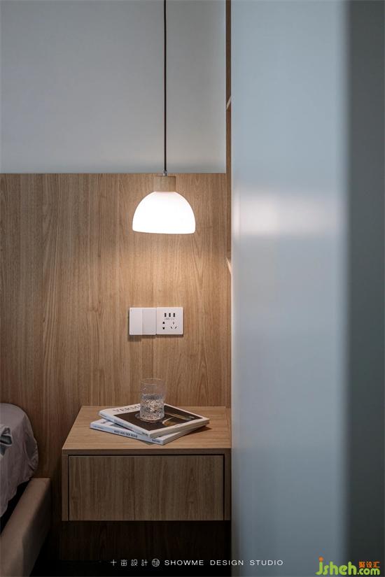 單邊床頭燈既滿足了低亮的臥室照明需求,同時也營造出一種不規(guī)則的美。