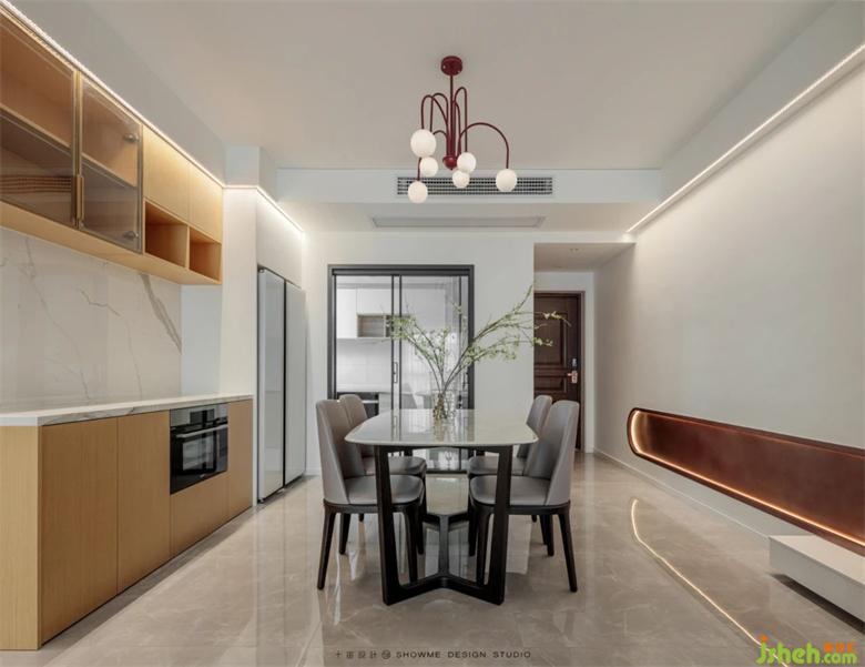 如果食物是最好的解壓,那么餐廳無疑是家里最具煙火氣的地方。邦泰天譽(yù)家裝設(shè)計(jì)精致的容顏在生活的氣息里依然從容,各色炊具杯盤有了秩序井然的安身之處,也有了展露身手的舞臺。