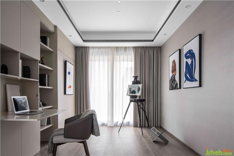 書房為一個(gè)半開放性空間,變化家具賦予了房間更多意義。可在此辦公繪畫,也可以讓前來(lái)拜訪的好友擁有私人的臥室空間。