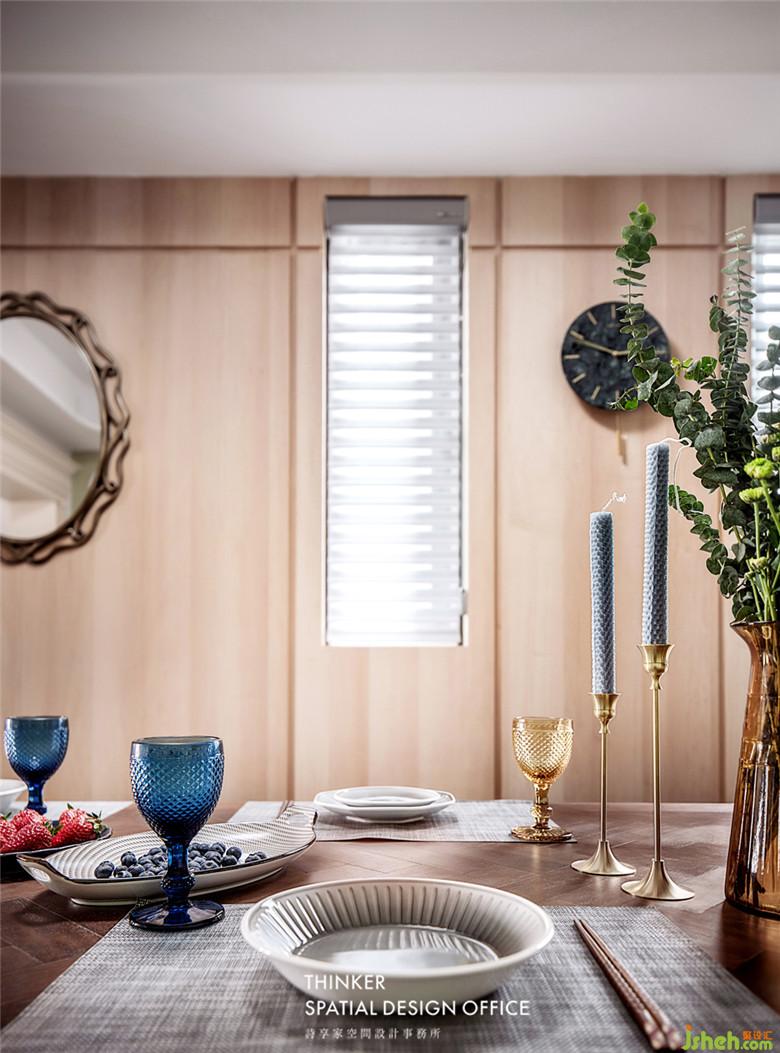 · 中廚,西廚和餐廳有機地連接在一起,優(yōu)化生活動線。雅士白島臺,原木餐桌,淺色木飾面,清新綠色墻面,一半現(xiàn)代,一半法式,起承轉(zhuǎn)合著復(fù)古之美與現(xiàn)代輕奢的時尚腔調(diào)。一席長宴,即一件不菲的生活藝術(shù)品,凝聚著溫暖與情感。