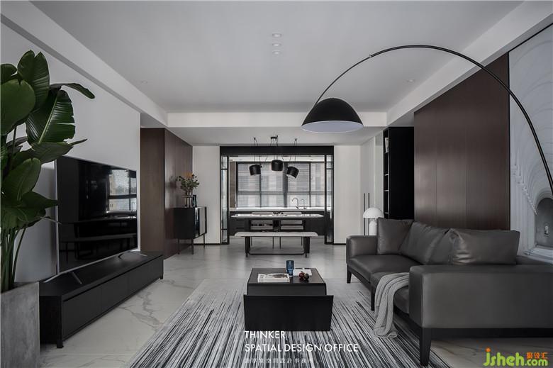 這個家?guī)缀踔挥泻?、白、灰與棕,每個角落都彌漫著硬朗的男性特質(zhì)。