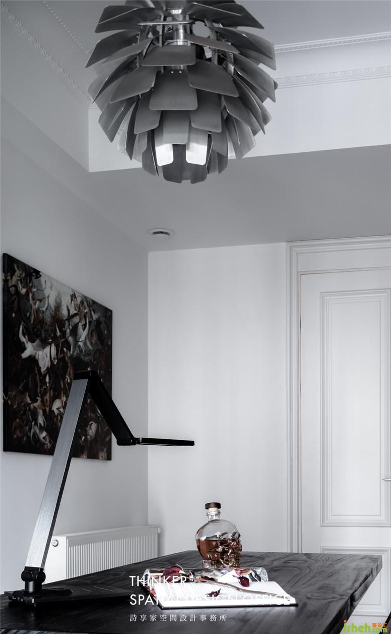 極具造型感的鐵藝書桌,金屬質(zhì)感的松果燈,不僅能將直接光源隱藏于葉片中、更能透過葉片互相折射使光源柔和而均衡地散布于空間中,為空間增加了藝術(shù)氣質(zhì),生活,原本就是藝術(shù)的一部分。