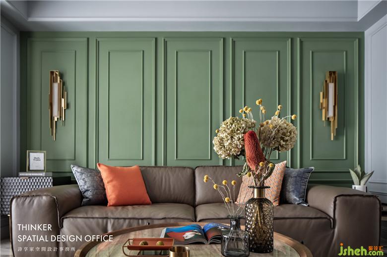 將陽臺擴(kuò)進(jìn)客廳,空間更顯明亮開敞亮,對色彩也有了更多的包容度。室內(nèi)設(shè)計師用淺灰色打底,提升空間氣質(zhì),而綠色沙發(fā)背景則顯得生機(jī)盎然,不需要任何裝飾畫,都能自成一景。