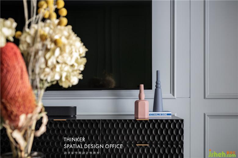 屋主喜歡的線條元素,以不同的形態(tài)在每個空間延續(xù)。簡潔的吊頂,用細(xì)膩的格子線條,沙發(fā)背景,室內(nèi)設(shè)計師則選擇了立體感超強(qiáng)的PU框線,搭配圓弧線條的頂燈,營造出大氣而精致的氛圍,也詮釋著“方與圓”的人生哲理。