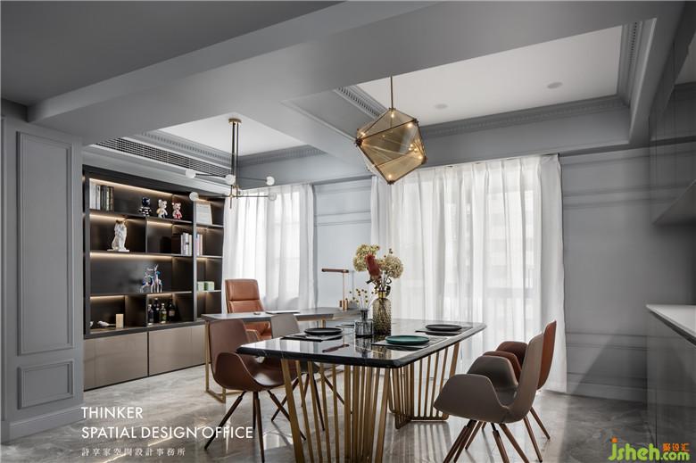 書房與餐廳的開放式格局,讓一個人的生活更愜意,可以自由切換生活場景。金屬和石材搭配的書桌與餐桌,帶來硬朗的男性氣質(zhì),干凈利落。