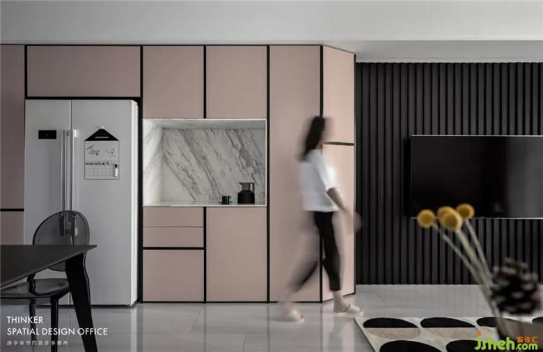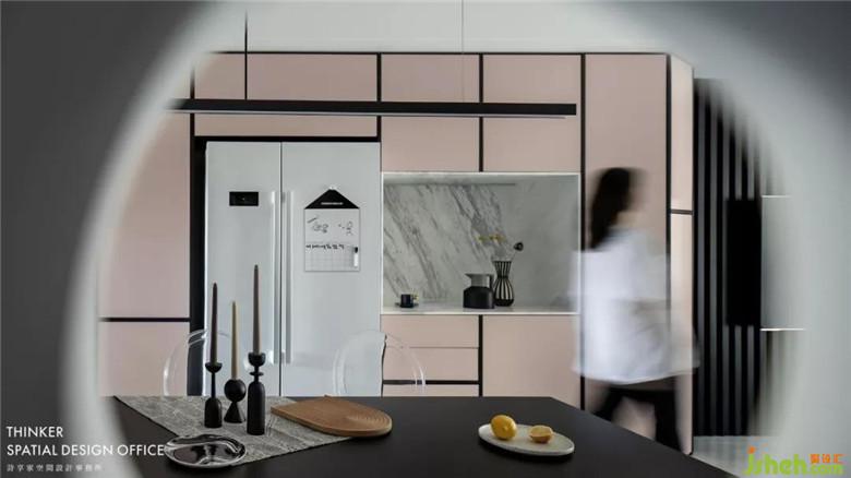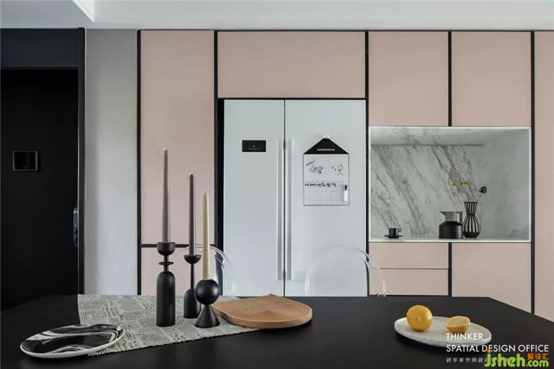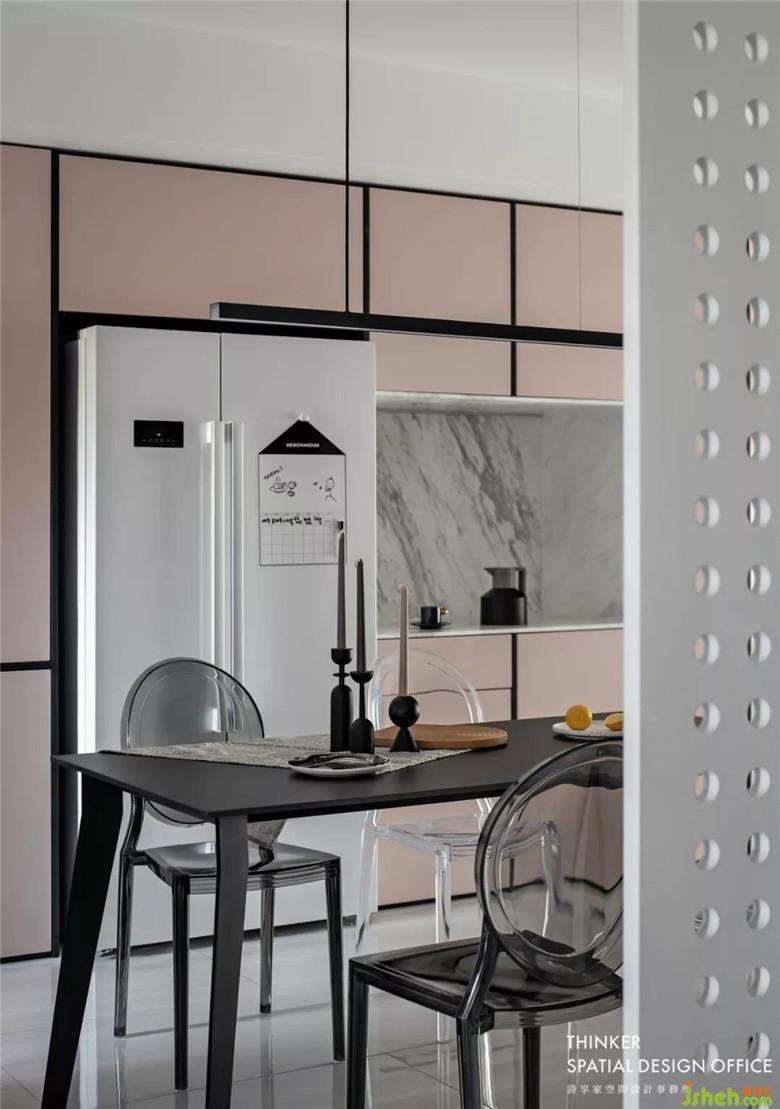 餐廳以淺粉為底色,運(yùn)用黑色勾勒出空間輪廓,神秘的黑色和柔美的粉色相遇,帥酷中的溫柔,最是動(dòng)人。