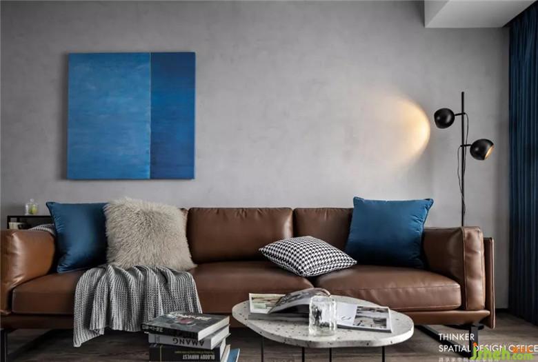 克萊因藍(lán)的窗簾、掛畫、抱枕是這個(gè)空間的亮點(diǎn),那是天空的顏色,是水的顏色,是空氣的顏色,給予人們無限的想象力。