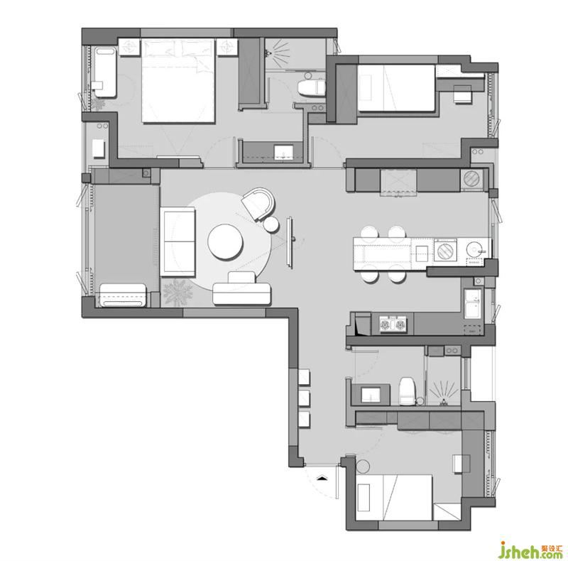 無需多余復雜的造型和材質(zhì),干凈、干練的現(xiàn)代風格就被刻畫出來了。