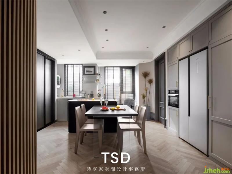 The male owner of this case is a senior engineer of tiesiyuan. He likes watching movies. In his spare time, he enjoys the warmth of sitting around and watching movies. The female homeowner loves baking and nostalgic style. At present, a family of three often live in the new house, and the elderly occasionally come to stay, so three rooms need to be reserved in space.