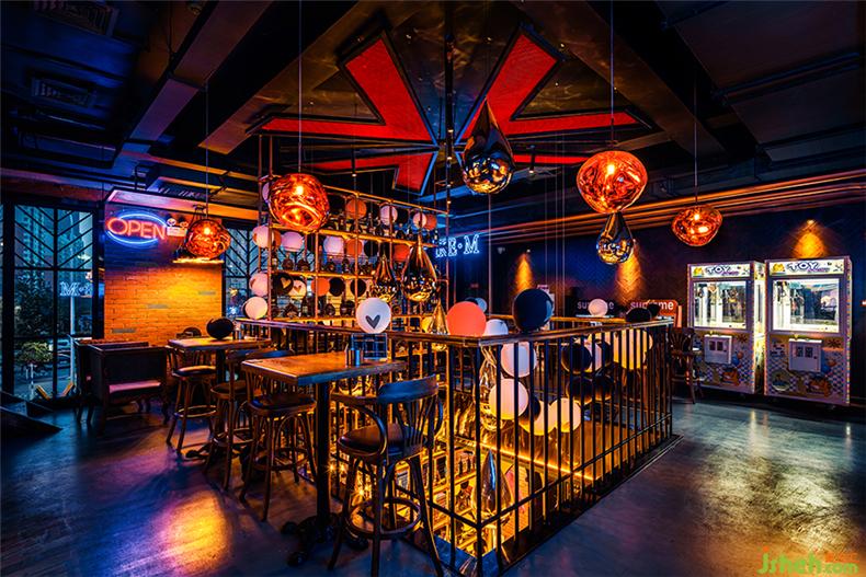 水吧文化的介入目的解決收銀系統(tǒng)和賓客的二層引流。酒吧設計