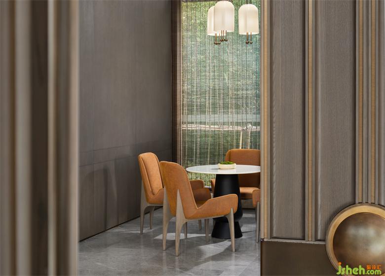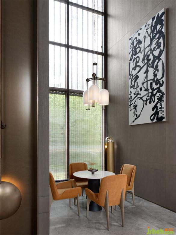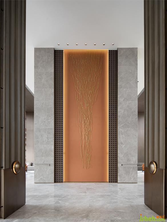 影壁上磅礴的「流水」呼應(yīng)著接待區(qū)「高山」的莊嚴(yán),空間動中有靜,靜默中不乏動勢,一動一靜間,令萬物的生命節(jié)奏躍然靈動于空間氣韻中。