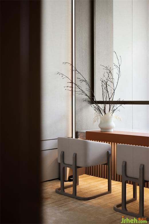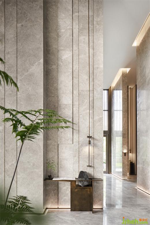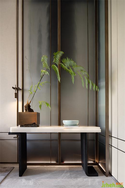 公共廊道通過小小端景創(chuàng)造著閑逸之趣,柏悅公館營銷中心設(shè)計(jì)以頑石、鉑晶太湖石、香爐、綠植點(diǎn)染不經(jīng)意地細(xì)微角落,當(dāng)代藝術(shù)的趣味靈動(dòng),豐盈著空間層次。