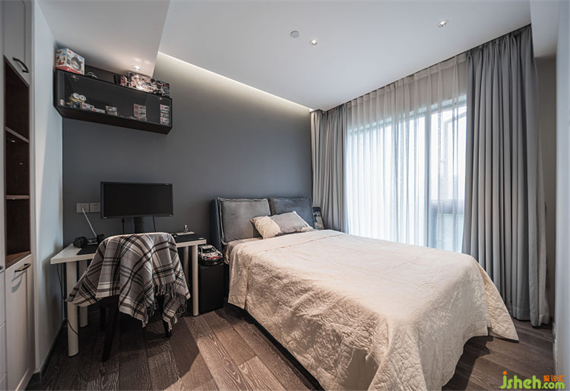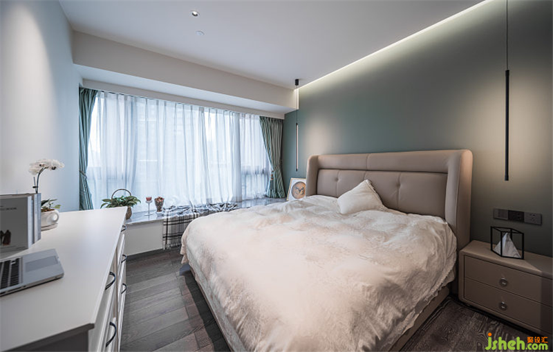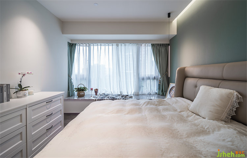 主臥在敞闊的空間中,臥室構(gòu)成了人生的“如水夢境”,空間功能相對獨立又可互動,內(nèi)與外、阻與隔、虛與實,正是古人所謂:會心之處不在遠(yuǎn),過目之物盡是畫。