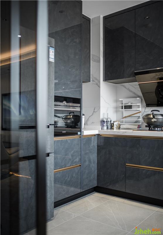 儲(chǔ)物室外墻面護(hù)墻板、展示柜、廚房外墻面用統(tǒng)一材質(zhì),讓空間立面體塊關(guān)系融合更統(tǒng)一,視覺感更舒適。