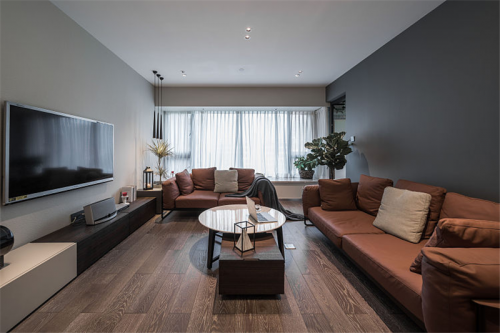 對(duì)于氛圍打造也起到重要作用,天花隱藏?zé)魩I(yíng)造出整個(gè)空間氣氛的細(xì)膩?zhàn)兓?。隱藏的點(diǎn)光源則作為空間主光源處理。整個(gè)空間不同體塊層疊的層次感,在材質(zhì)的選擇上以中性灰色打底,暖白調(diào)貫穿,棕色點(diǎn)綴,形成冷暖色調(diào)對(duì)立,讓一個(gè)空間中造型的繁簡(jiǎn)與材質(zhì)深淺進(jìn)行節(jié)奏對(duì)話,不讓定義風(fēng)格干擾空間的想象力。