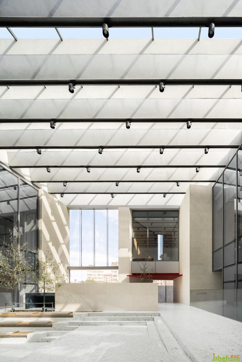 曾經(jīng)的濟(jì)南,泉水淙淙鎮(zhèn)日為伴,流動(dòng)意象滲入聽覺和意識(shí),柔軟整座城的心緒。當(dāng)現(xiàn)代主義的理性效率滲入生活、以利落筆觸改寫城市天際,該如何替建筑的理性添入抒情想象空間?水相設(shè)計(jì)企圖以泉城過(guò)往曲水垂柳的街戶風(fēng)貌,柔化當(dāng)代理性主義架構(gòu)的建筑,讓此空間匯入泉城72泉,成為第73號(hào)涓流的意象。