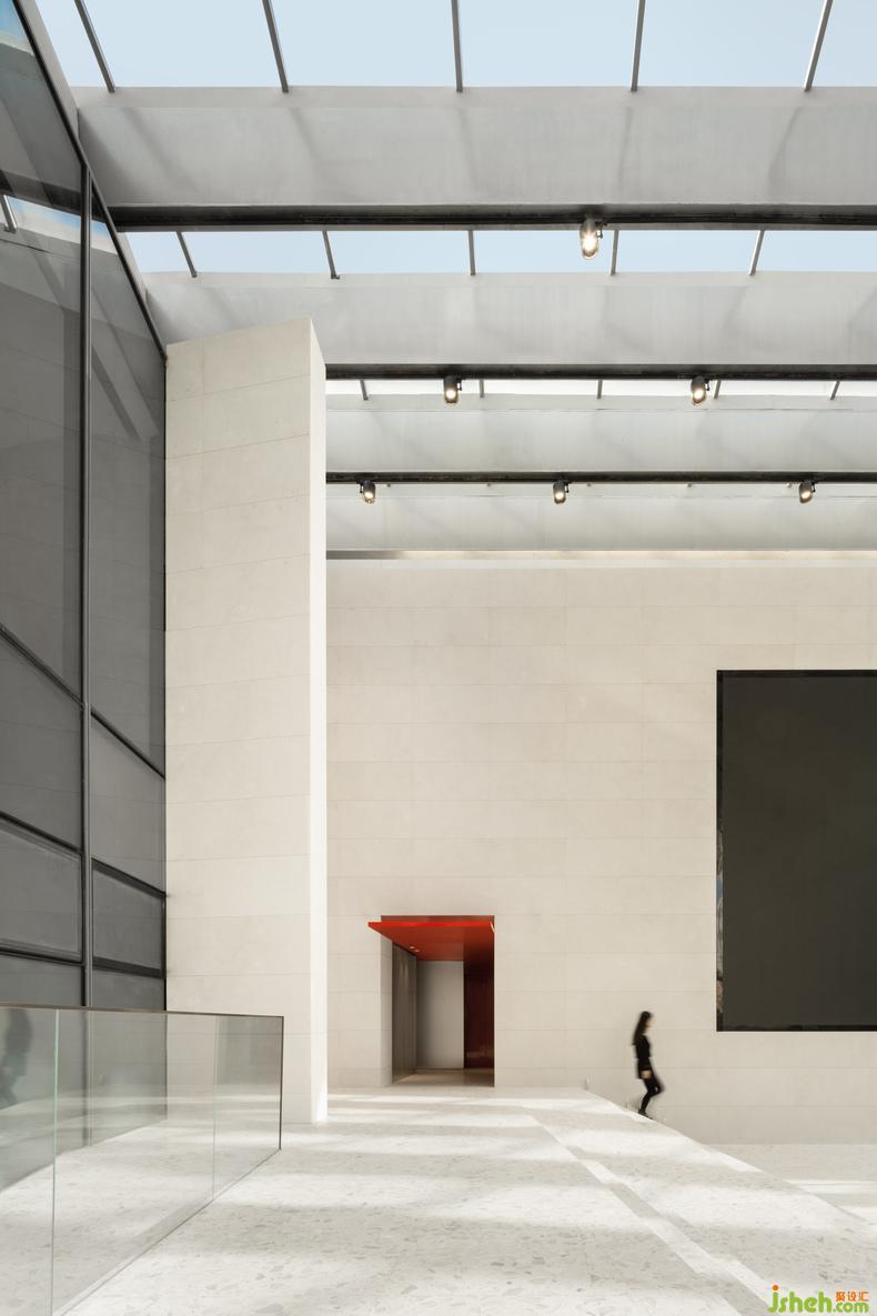 踏入建筑,入口由下挖式白色中庭建構(gòu)起點(diǎn),富節(jié)奏感的踏階環(huán)繞在側(cè),對(duì)人們行經(jīng)或逗留抱著從容姿態(tài),無(wú)主從之分的開放性路徑連接四方區(qū)域,擇其一進(jìn)入空間,這趟不是為了看一幅畫,而是親身浸入畫中。