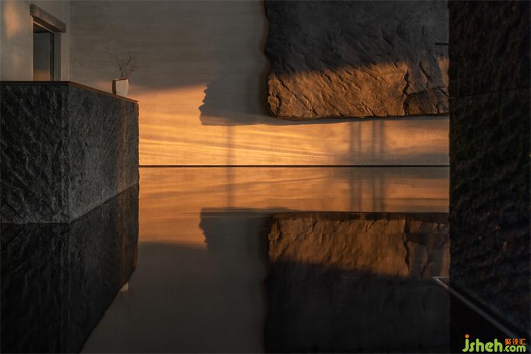設(shè)計(jì)師以此為靈感,裝修設(shè)計(jì)入口以原石切砌山谷縱深,柜臺(tái)深鑿石面不僅作為建筑立面,亦為山壁寫意陳列,將自然奇石姿態(tài)化為體驗(yàn)自然的情緒轉(zhuǎn)折;入口如鐘擺規(guī)律擺晃的曳影裝修設(shè)計(jì),用最簡(jiǎn)語(yǔ)法呈現(xiàn)輕舟已過(guò)萬(wàn)重山、搖槳緩緩在水面畫出漣漪,最終仍隱淡于遙遠(yuǎn)山腳。