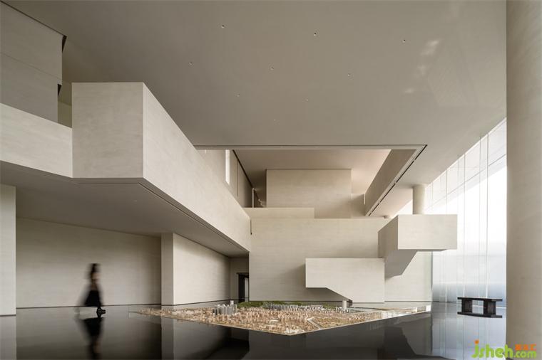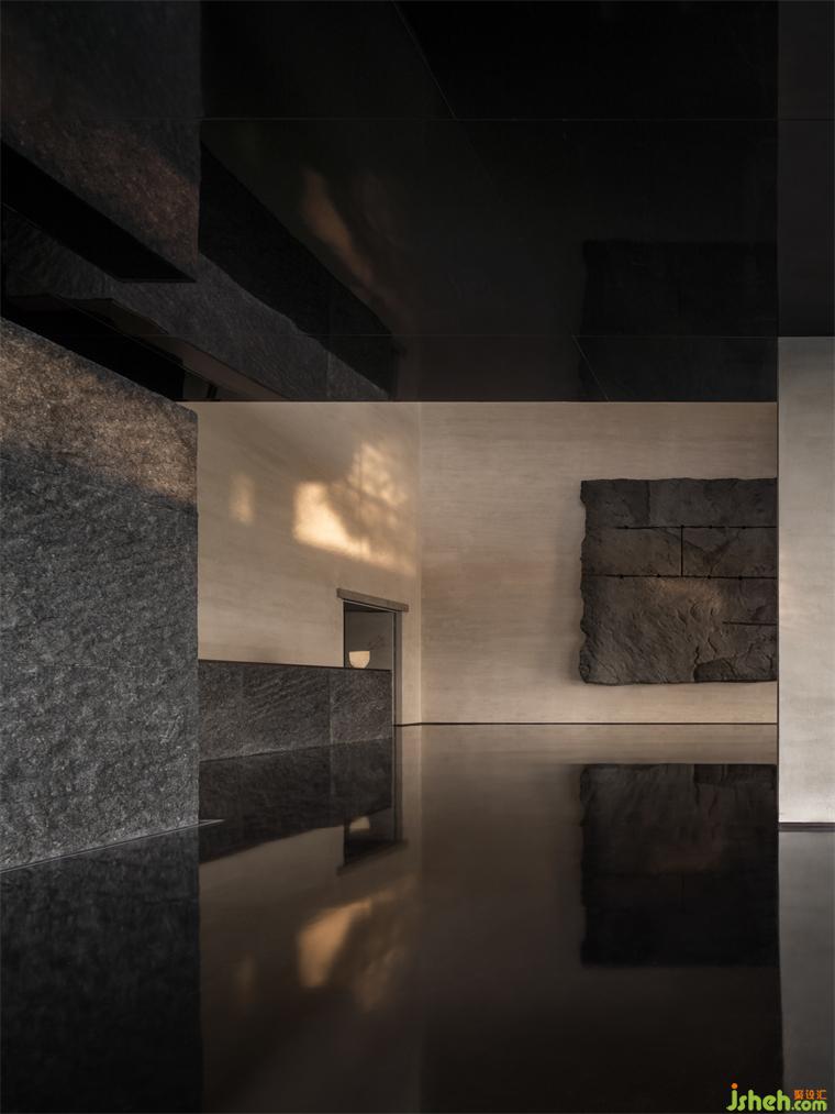 山前一泓深邃平靜的氤氳江岸,裝修設(shè)計映照峰林起伏與偶爾掠過鳥飛人影。設(shè)計師想像穿梭建筑內(nèi)部如登山的修習(xí),穿過枝葉相掩、巨石遮天的隧道或于崖下仰眺山峰高聳,感受個人心境轉(zhuǎn)折及不執(zhí)著物象的澹然。