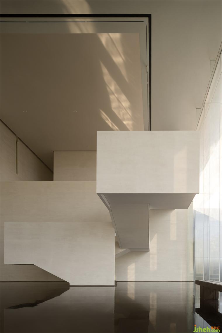 舍棄執(zhí)著,將自身抽離于環(huán)境維持不沾不滯的清明,裝修設(shè)計因此不模擬具象山水,而是透過人在結(jié)構(gòu)間曲折、攀爬、仰望、俯視的多向觀點,甚至地坪反射倒影的虛實輪廓,再現(xiàn)人在山中漫游的姿態(tài)經(jīng)驗。