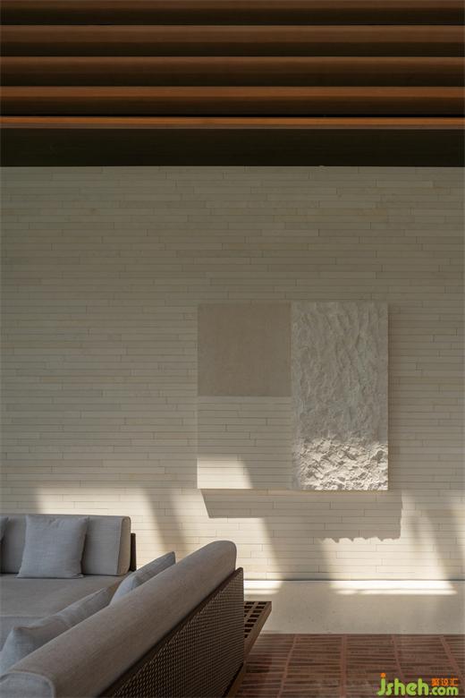 從南島燦陽步入屋宇幽靜,天光明暗能順勢區(qū)分行為及氣氛,故人造光源錯(cuò)開活動(dòng)高度,退居陪襯,體驗(yàn)館裝修設(shè)計(jì)多以低矮桌燈、藏于圓柱間或高懸于屋頂,使目光所及感到含蓄安定。