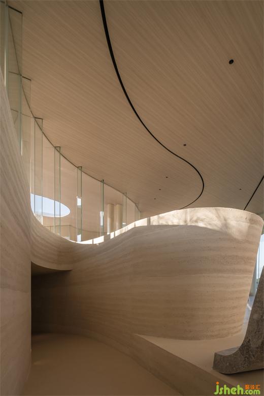 除此之外,它無斷面切割線的中性特質(zhì)更能放大延伸感,生態(tài)公園設計整體仿佛大自然隨性捏塑的大尺度雕刻,流暢連貫而使人感到安定。