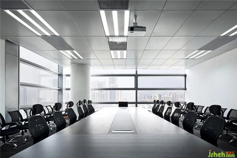 會(huì)議室延續(xù)穩(wěn)重簡(jiǎn)潔的灰色調(diào),風(fēng)格穩(wěn)重。四周墻面采用全玻璃式設(shè)計(jì),使視野延伸至整個(gè)城市,體現(xiàn)了沉穩(wěn)而開(kāi)闊的企業(yè)氣質(zhì)。