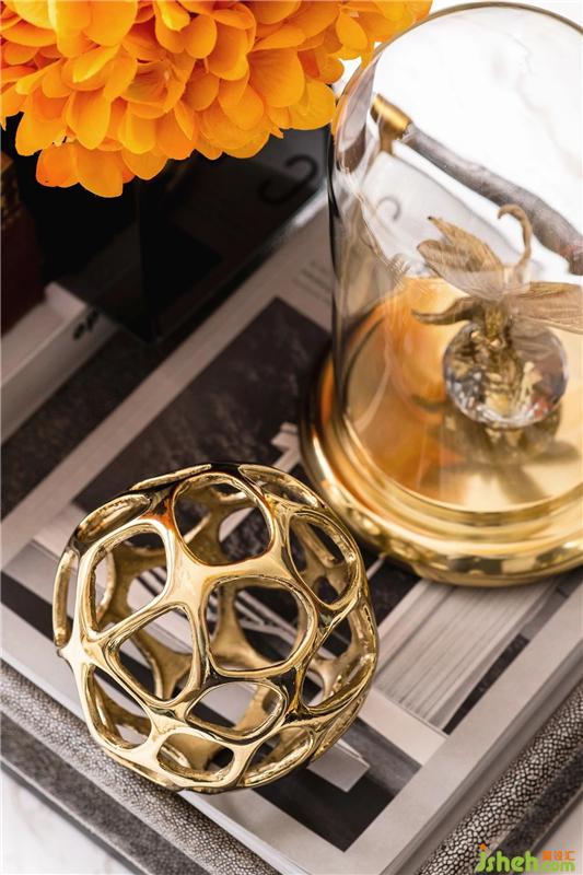 The overall space is dominated by mica and orange. The color is cool and the lines are simple. The metal color, the leather hard bag and the line sense create a sense of quality in the space, simple and stylish.