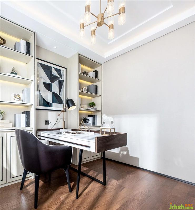 書房無(wú)過多的裝飾,戶外光線與白色墻壁,增強(qiáng)空間的亮度。