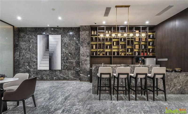 實(shí)木柜體與大理石的完美貼合,現(xiàn)代風(fēng)格,干練氛圍呼之欲出,帶有沉穩(wěn)理性的色彩,拉近顧客與空間的距離。