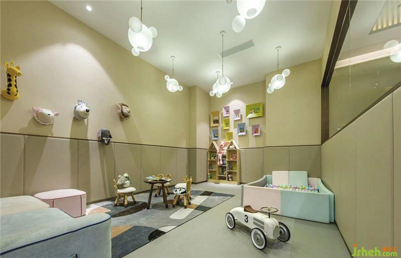 The beige walls and soft lighting make the elements of the space full of vitality. Provide a relaxing play area for young children.