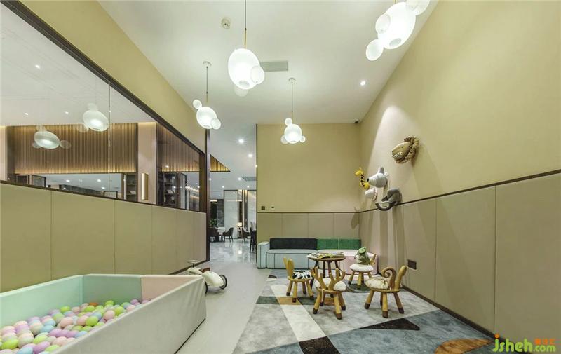米色墻壁與柔和的燈光照射,使空間的元素充滿生命力。為小孩子提供輕松的玩樂場地。