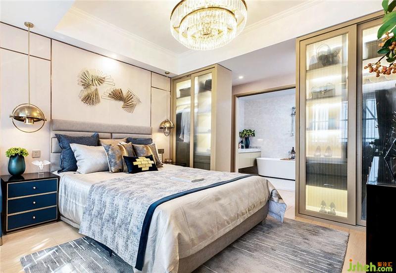 The bedroom and bathroom are separated by a hidden dressing table to create a noble living ceremony in the master bedroom!