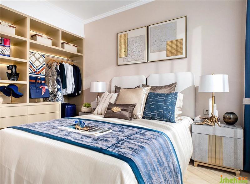 次臥做了整體的壁柜處理,與背景墻的顏色搭配的恰到好處。