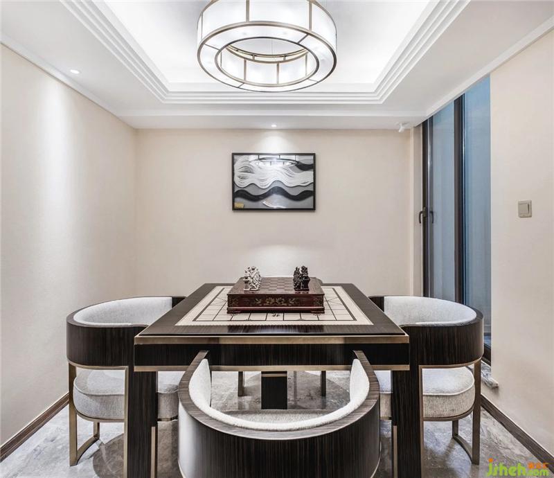 The design of the wine cabinet emphasizes practicality and decoration. The combination of solid wood ceilings, wooden floors and wine cabinets, the jazz white marble bar is soft and clean, and the introductory design creates a noble living space.