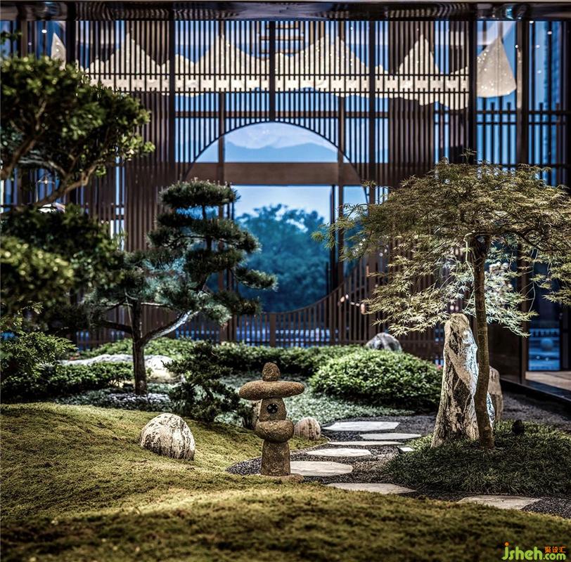 以“山”為載體,搭配金屬古銅茶幾,與沙盤上空山形吊燈相呼應(yīng),瞬間提升整個(gè)空間的品質(zhì)感,營(yíng)造出山、木、影結(jié)合下的雅致氛圍......