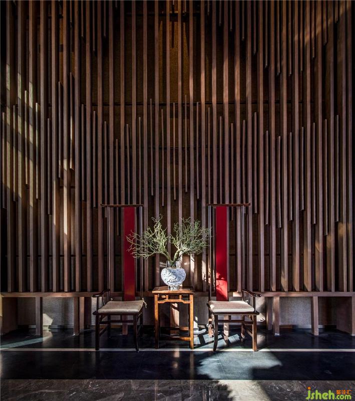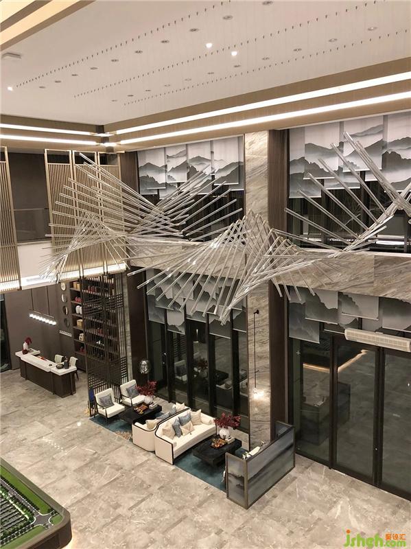 In the step-by-step sales control hall, the two weathered woods standing at the door are the most eye-catching. Weathered wood is a feng shui mascot. In the case of natural air drying, the tree retains the most primitive state, and the formed artwork is presented in the form of a lamp, which makes the space return to nature and return to the original.