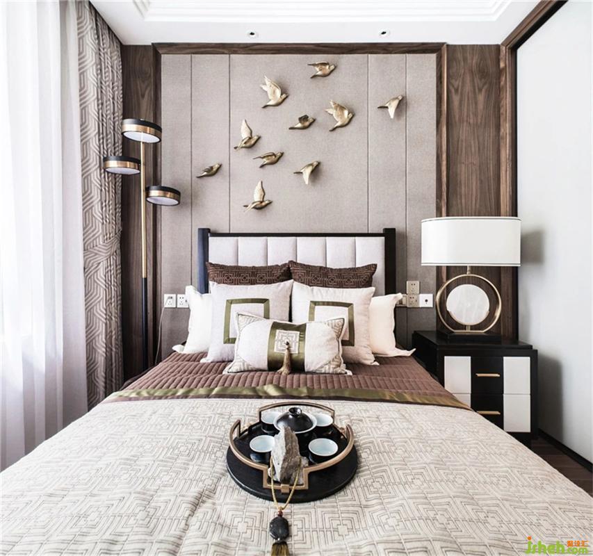 云中誰寄錦書來,雁字回時,月滿西樓。臥室墻壁裝飾賦予了空間以動感。詩意棲居 、藝術(shù)速寫 、內(nèi)斂與時尚交融。